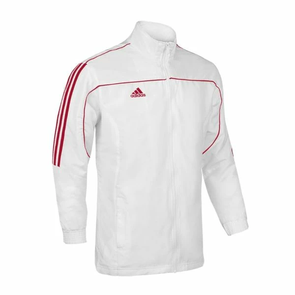 Adidas Tracksuit Jacket – Made from 100% polyester material with a full length front zipper and a zipped pocket on each side. Each arm features adidas stripes and elasticated wrists.