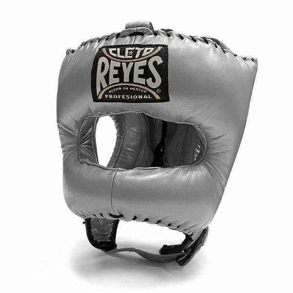Cleto Reyes Pointed Nylon Bar Headguard – The bar provides excellent all round protection for the head, nose and eyes. Manufactured from ‘head’ leather with fully adjustable lace-tie on top and velcro adjustment at the rear for the optimum fit. The pointed bar offers more vision from upper cuts through than the rounded bar headguard.