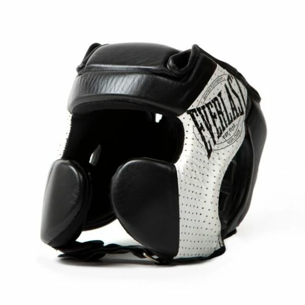 Everlast 1910 Headgear – The Everlast 1910 Headgear is the perfect combination of boxing heritage and modern-day advances in protection. Premium full grain leather construction resists moisture while providing optimal, long-lasting durability. The lightweight foam padding makes this headgear the perfect balance of protection and mobility. Easily slip the headgear on and off with hook-and-loop rear closure system. Adjustable lace forehead guard and buckle chin strap provide the ultimate in customizable fits. Specially designed cheek guards and integrated ear protection add ideal security and coverage without hindering line of sight or hearing. A modern take on a classic line, the Everlast 1910 Headgear is a must have for any fight connoisseur.