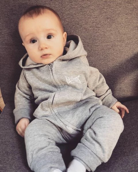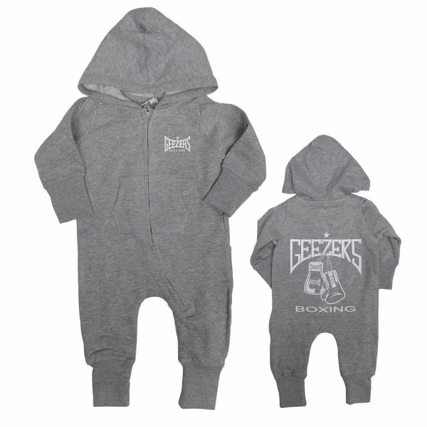 Geezers Back Logo Baby Coverall – A brushed back super soft fabric with single layer hood and kangaroo pockets, featuring a zipper from the top of the neck to the lower leg for ease of dressing. The zip features a comfort tab and placket, and both back neck taping and locker patch. Extra long ribbed cuffs at sleeves and legs, which can be worn; both folded and unfolded as baby grows.