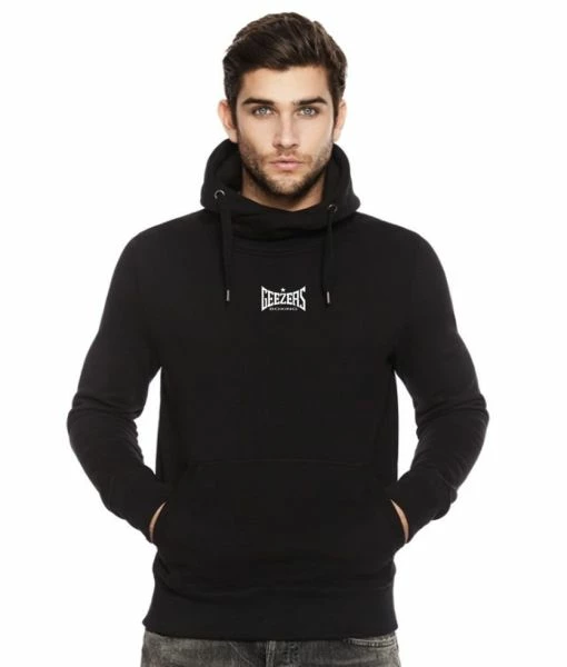 Geezers High Neck 6.5 Hoodie – Generously tailored for comfort and is made of 80% Cotton / 20% Polyester. Pull over fleece hoody with a crossover, high neck design and front kangaroo style pocket.
