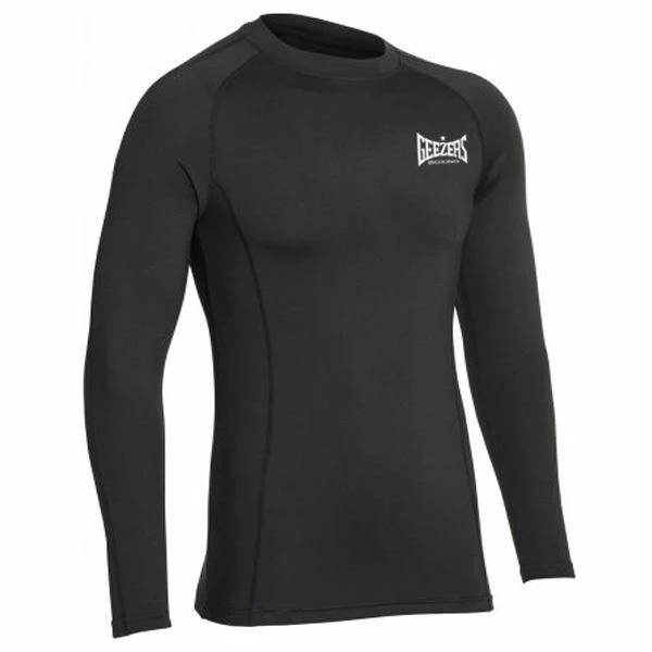 The Geezers Performance Base Layer Long Sleeve Top is made from high stretch polyester/spandex material that makes it comfortable, durable and offers great support to your upper body. This material is also quick drying which helps to keep you cool and dry whilst training. It allows the transfer of body moisture from the inner to the outer surface of the garment to evaporate, which enhances wearer comfort. The top has flat lock seams that are positioned to reduce irritation and chafing, this allows for maximum comfort during use. This top can be worn under any normal training apparel, which makes it perfect during the winter when keeping warm for training is essential to reduce injury risk. The top features the Geezers Boxing logo just above the left chest and like all our products is high quality and long lasting.