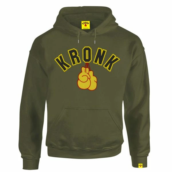 Kronk Gloves Applique Hoodie – Classic design made famous by the many celebrated and iconic boxers that have trained in the Kronk Gym. Made from 50% Cotton 50% Polyester. Featuring double fabric hood with self coloured cords, kangaroo pouch front pocket, ribbed cuffs and hem with twin needle stitch detailing.
