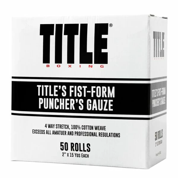 TITLE Boxing Fist-Form Puncher’s Gauze – The unique, open-weave pattern provides the absolute best-fitting gauze in every corner of the boxing universe. Lightweight and stretchable design contours to every knuckle, joint and bone in the human hand. The 2” x 15 yard length is perfect to easily-adapt to any amateur or professional wrapping techniques. 100% premium cotton for the most comfortable fit and feel for your fists.