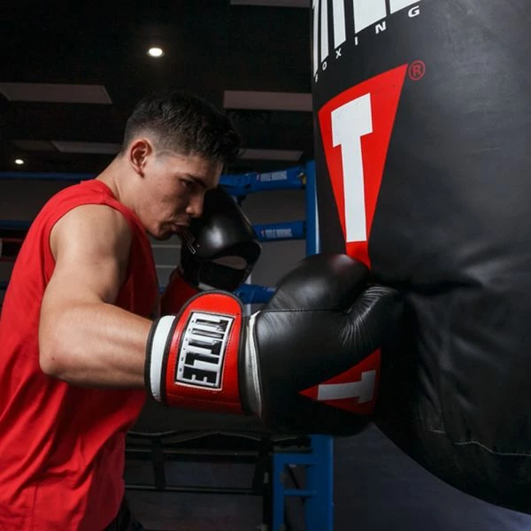 TITLE Boxing Gel Weighted Bag Gloves – This glove will help you increase your hand speed, punching power and conditioning. We recommend you use this when hitting the bag, punch mitts or even just shadow boxing. The heavy layer of GEL across the entire fist absorbs impact and adds weight to your training session. This glove comes with a slightly larger hand compartment than normal gloves, it is constructed of genuine leather for longevity and a mesh palm for breathability. In just one three-minute round with these weighted gloves on, you will feel the burn.