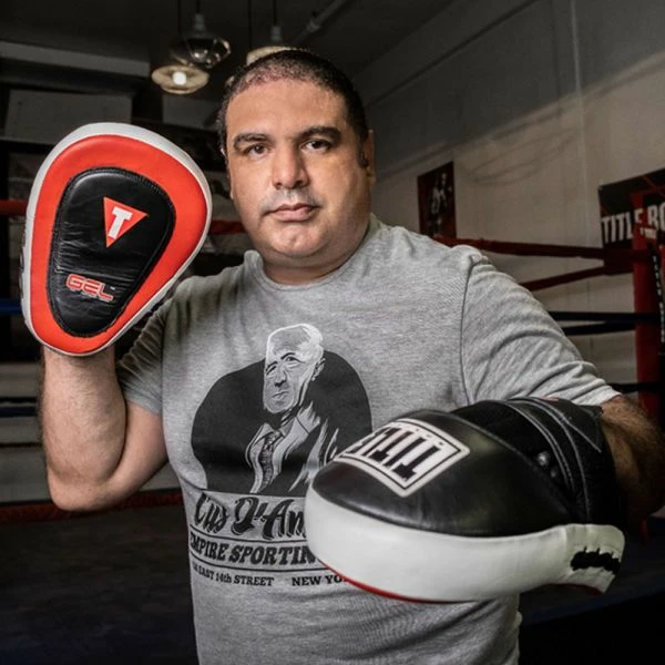 TITLE Boxing Legacy Cus D’Amato Tee – 90/10 combed ring spun cotton/poly. Slightly slimmer body and shorter sleeves. 1×1 rib knit neck. Shoulder to shoulder taping.