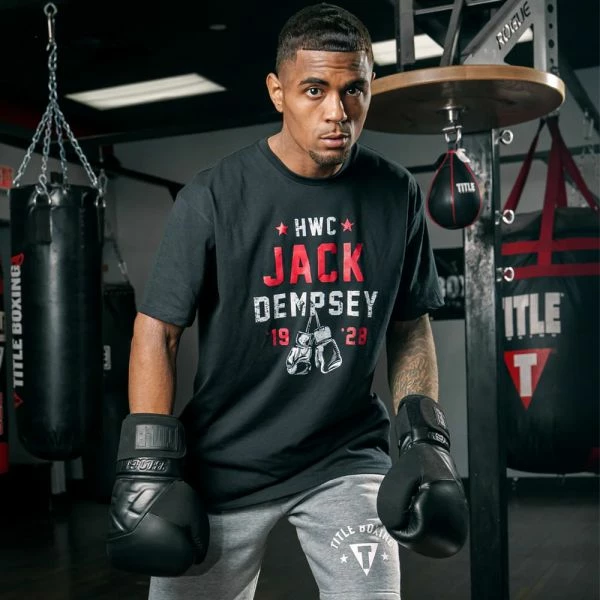 TITLE Boxing Legacy Jack Dempsey HWC Tee – 60/40 combed ringspun cotton/polyester. Fabric laundered. Set-in CVC 1×1 baby rib collar. Side seam.