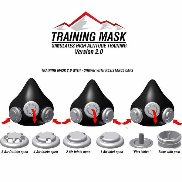 Elevation Training Mask 2.0 – Makes your work out more efficient allowing you to take your work out from 60 minutes to 20 minutes. From the average daily walker to the marathon runner, Training Mask 2.0 appeals to every athlete who wants to improve their overall health and performance and get the most out of there workout. The Elevation Training Mask 2.0 is the ultimate respiratory training device for breathing and controlling the flow of air delivered in to your body. The Multi level resistance system creates a resisted air flow through flux valves into the Training Mask 2.0 and inturn to yourself. When your body adapts to the resistance of Training Mask 2.0 your lungs will be trained to take deep beaths that use oxygen more efficiently than before.