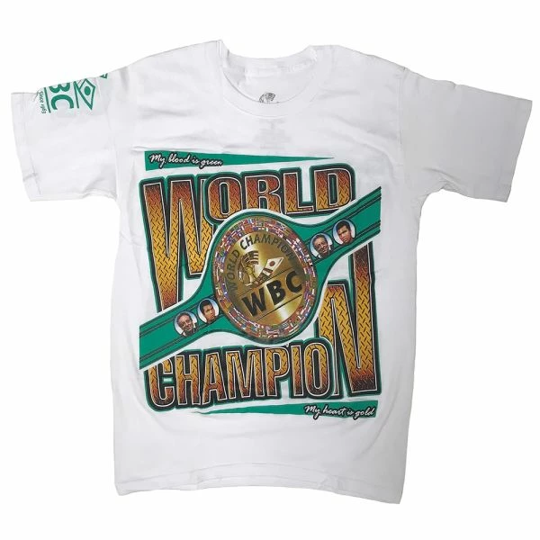 – Official WBC memorabilia with a famous green WBC belt logo and printed ‘World Champion’ on front and rear.